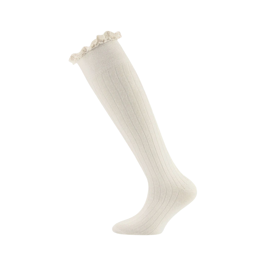 De Ewers kniekous rib gebroken wit is een perfecte toevoeging voor de zomeroutfit van je meisje. De kniekous heeft een fijne ribstructuur en is gemaakt van hoogwaardig katoen. Ecru kleur past perfect bij een feestelijke outfit, zoals voor een bruiloft en door de broderie rand krijgt de kniekous een extra feestelijke uitstraling, maar ook voor een dagje school zijn deze meisjes kousen perfect.