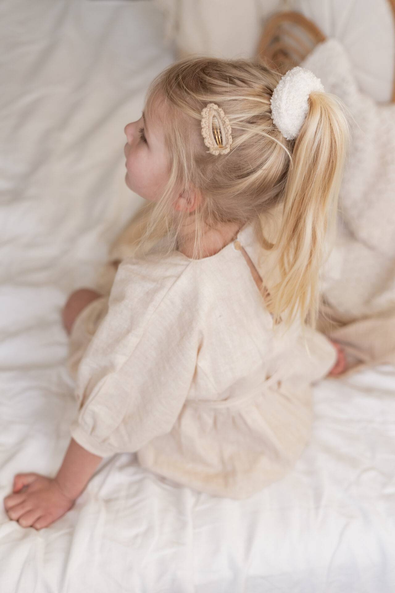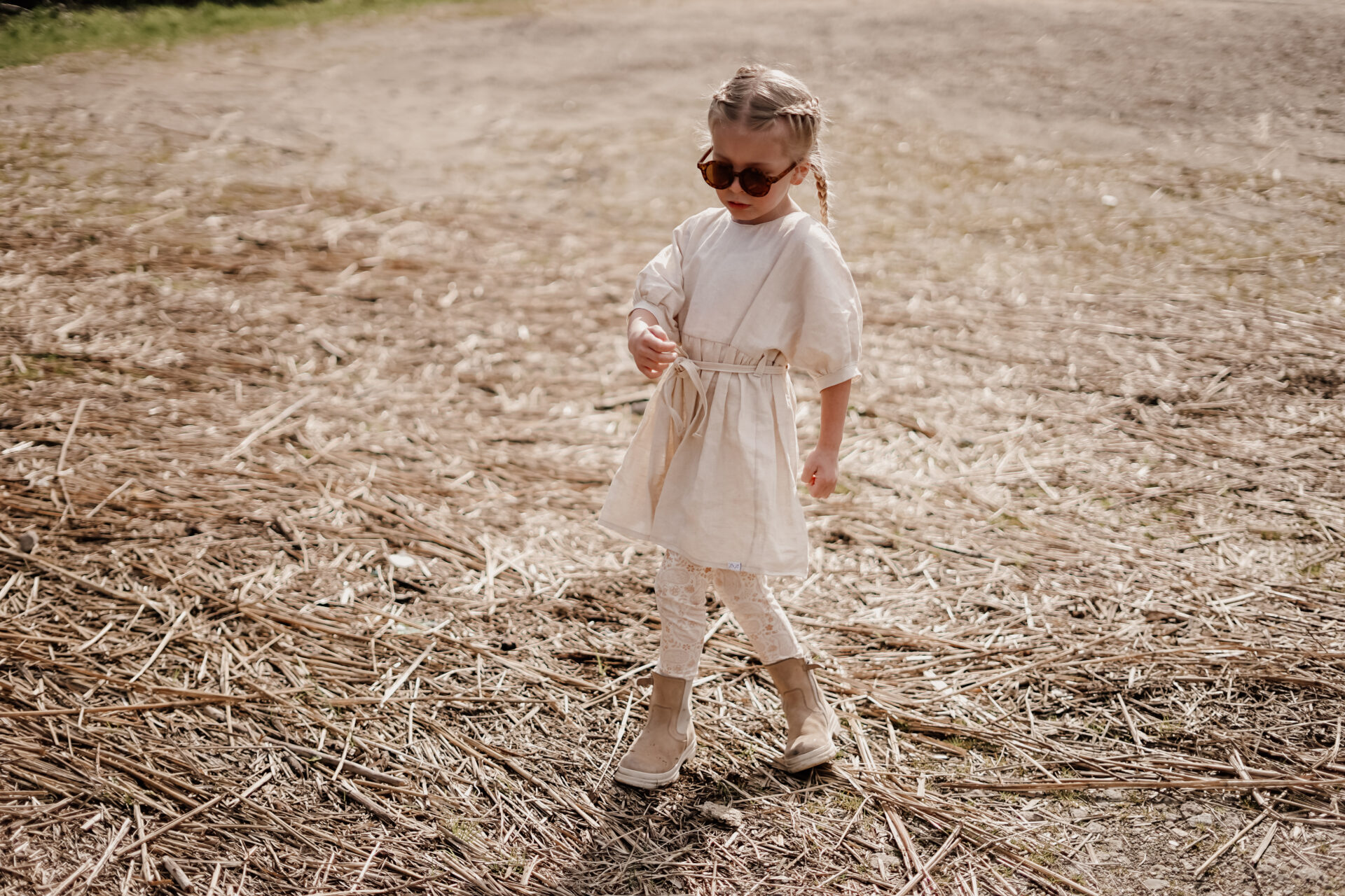 Combineer jurkje Rosa linnen naturel met legging Poppy of style het jurkje af met prachtige ecru kniekousen met strikje. Door de neutrale kleur is het meisjesjurkje eigenlijk met heel veel andere kleuren en printjes te combineren. Zo kun je het geheel naar eigen wens stylen.