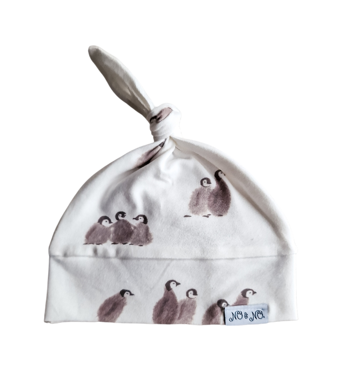 Knoopmutsje Sky is een newbornmutsje met prachtig neutraal pinguïn printje. Het mutsje is gemaakt van zachte katoen jersey. In combinatie met boxpakje Sky creëer je een perfect newbornoutfitje. Het mutsje is one size en echt bedoeld voor de allerkleinsten. De kleuren van de pinguïntjes zijn bruin en taupe/grijs. Overslagshirtje taupe rib kleurt hier perfect bij.