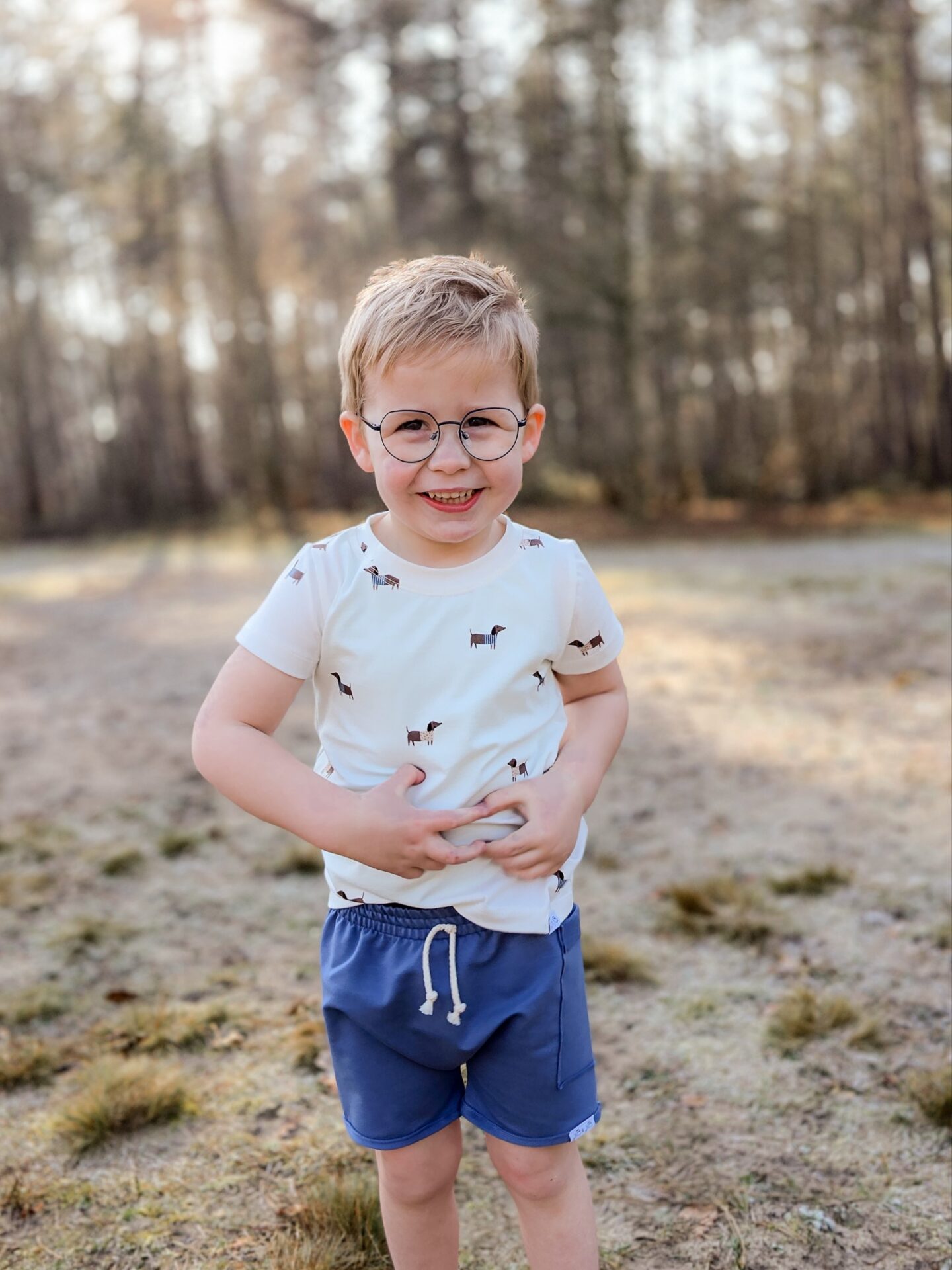 Met deze blauwe short voor jongens steelt jouw zoon de show deze zomer. Het is een heerlijk comfortabele broek met een look van een spijkerbroek. Door de frisse blauwe kleur past het broekje bij veel shirtjes uit onze collectie. Broek Jens is gemaakt van french terry katoen stof. Dit is iets dikker dan normale t shirt stof, maar niet te warm voor in de zomer. Dit model short heeft een siertouwtje aan de bovenkant, doorgestikt boordelastiek en omgevouwen randjes aan de onderkant.