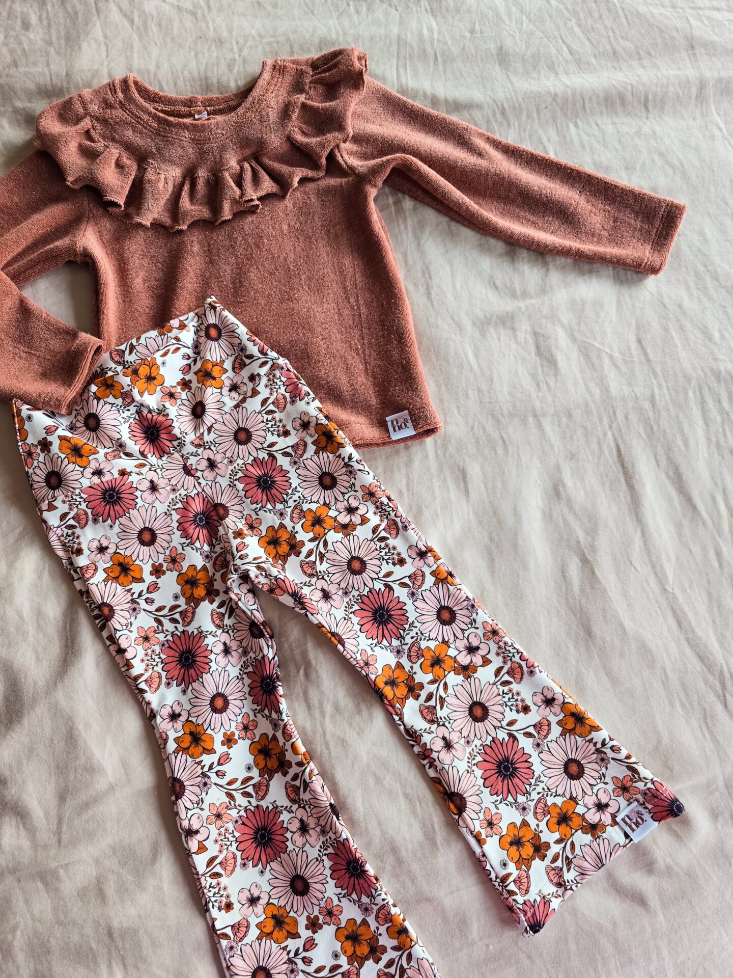 Met deze prachtige longsleeve van badstof is je dochter echt klaar voor de herfst. In combinatie met het bijpassende strokenrokje creƫer je een outfitje wat lijkt op een jurkje. De ruffle over de gehele borst en rug geeft het meisjesshirt een unieke uitstraling. De klei roze kleur past prachtig in het herfstachtige kleurenpallet. Het meisjesshirt is gemaakt van heerlijke zachte katoen badstof tricot.