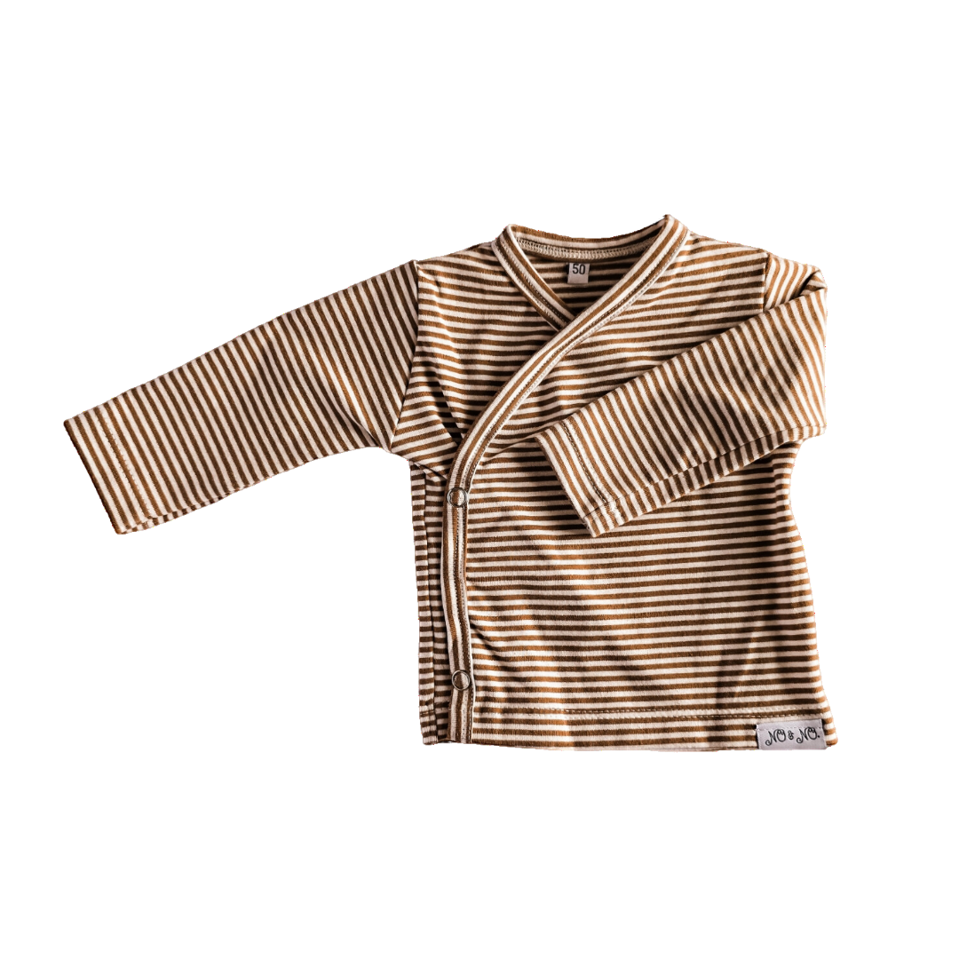 Overslagshirtje in een prachtige neutrale stof. Combineer met hetzelfde print broekje of kies voor een effen broekje.
