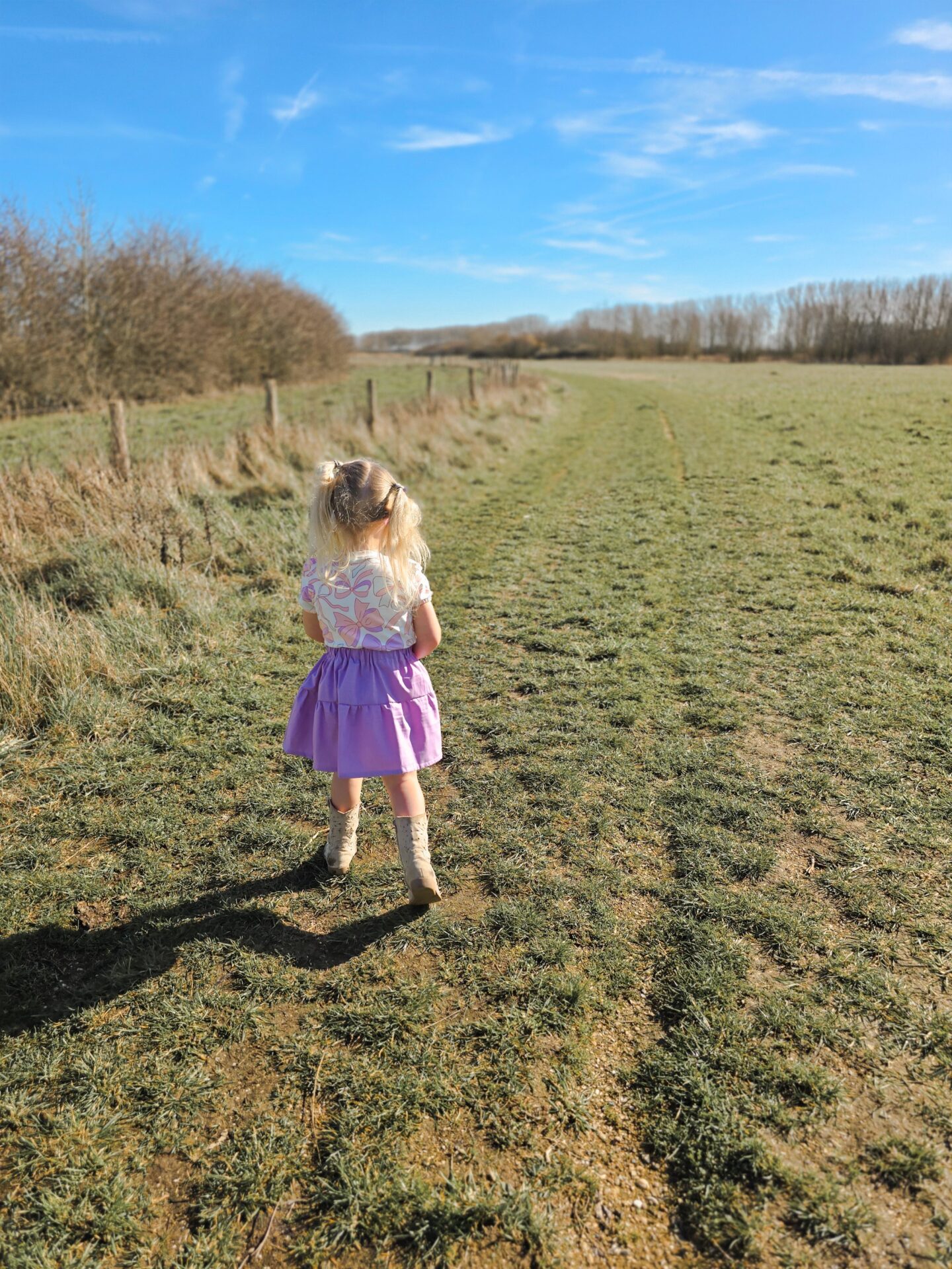 Match dit vrolijke meisjesshirtje met strokenrokje Lilly, Pippa of Minthe. Style het meisjesoutfitje af met de lila rib kousjes of gehaakte witte kniekousen.